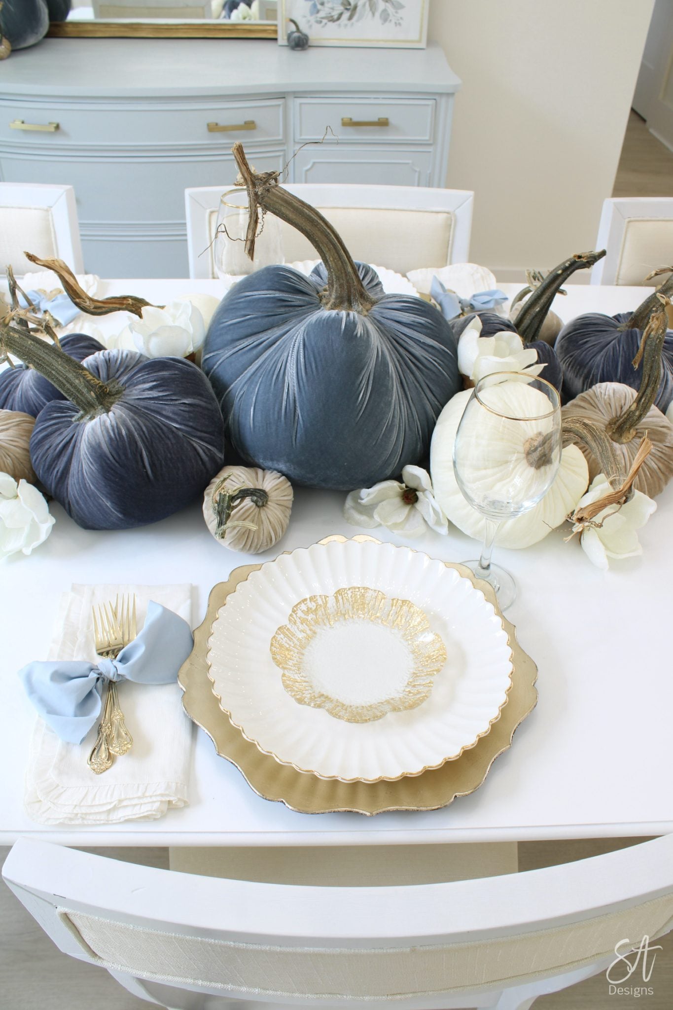 We always reccomend layering various sizes in order to create the most beautiful tablescape. Alternatively, single small pumpkins make for a great placesetting accent. Don't be afriad to tilt, twist and stack your pumpkins on top of other platters, books or bowls to create your own Hot Skwash centerpiece. Scroll down to see inspirational photos, and visit our Instagram and Pinterest for more style ideas!