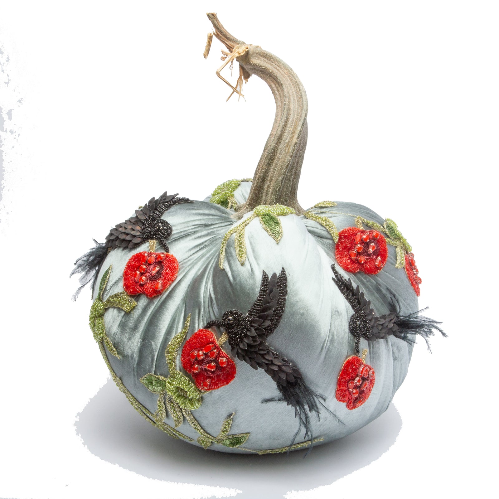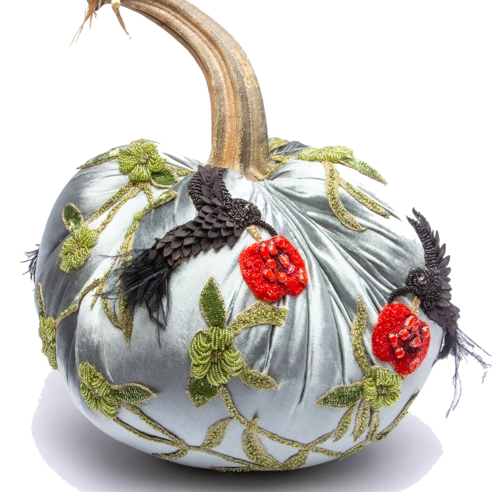 These silk velvet pumpkins are truly one of a kind, featuring the finest materials and hand-picked stems. If you fall in love with a design, get it now because she only makes one. Whether you’re looking for a pumpkin with feathers, crystals or another collector’s item, we’ve got something special waiting for you. Get yours today, and complete your home décor collection!